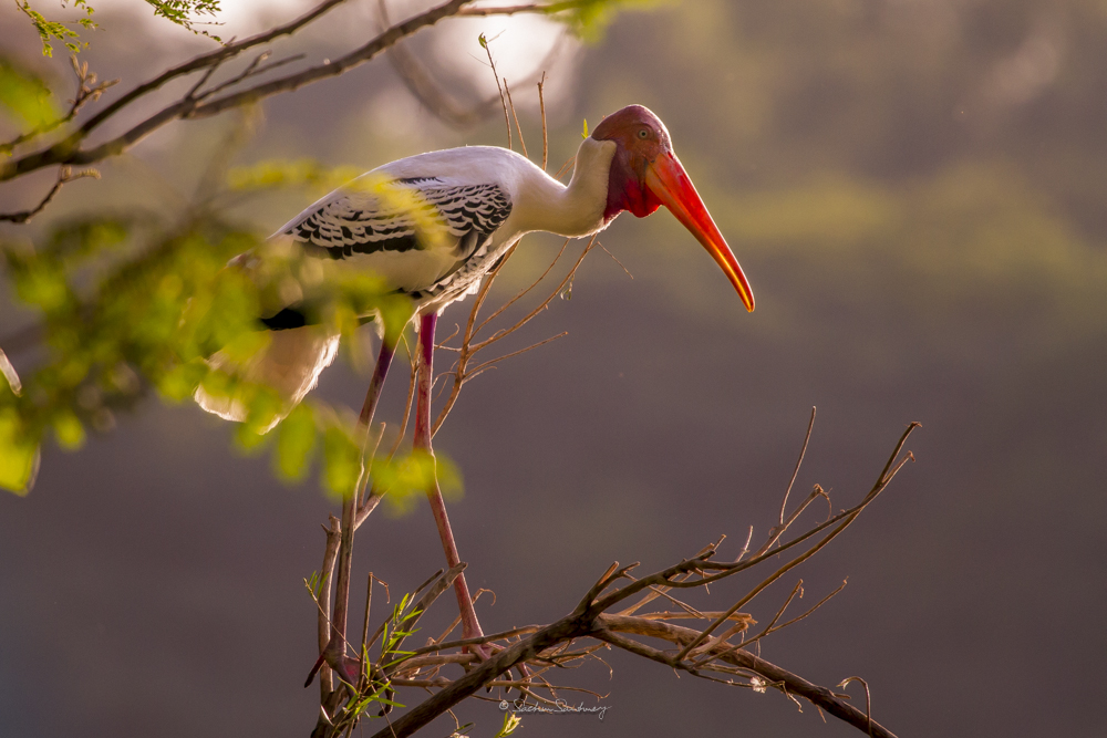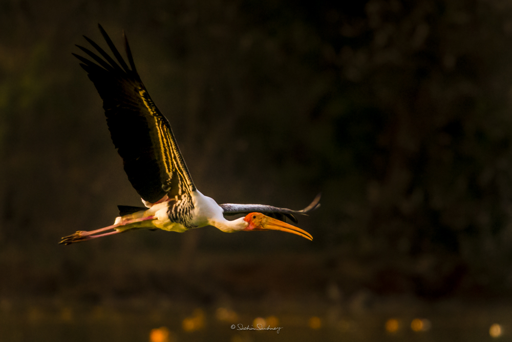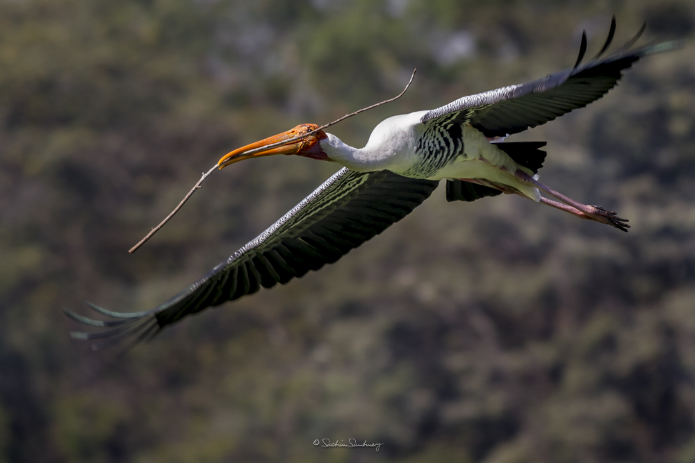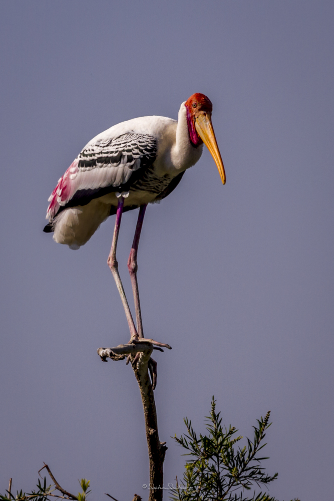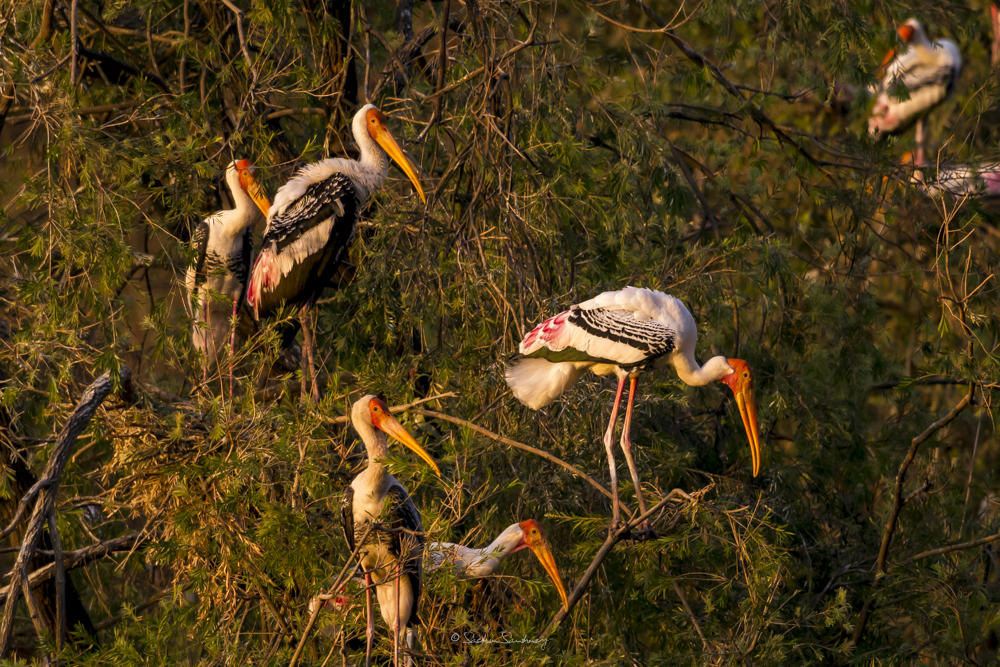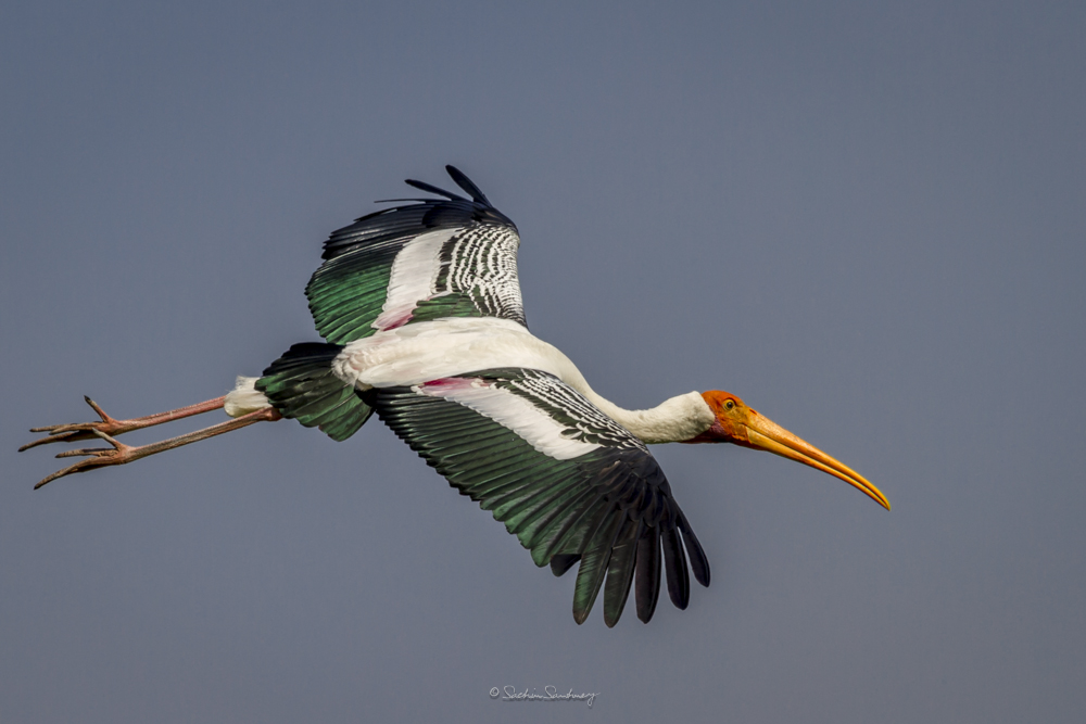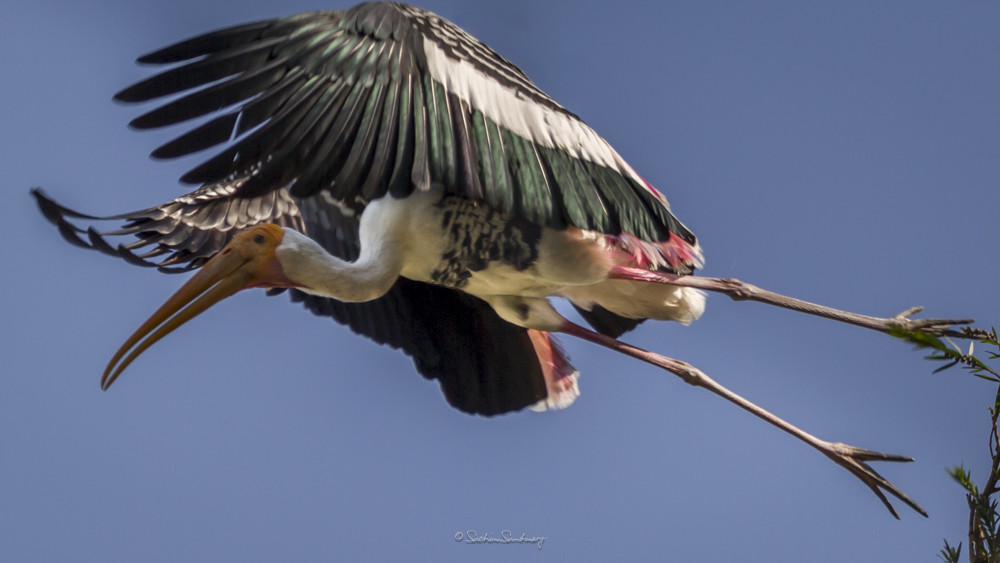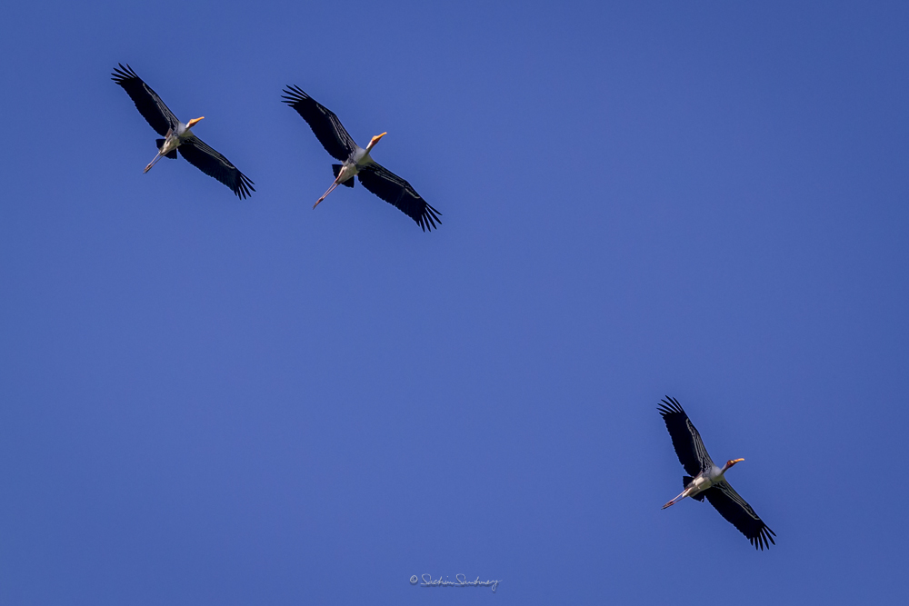 The bird is found in the Asian continent, covering the area from India and Sri Lanka to Southeast Asia. Broad-winged soaring birds, the Painted storks of India fly with their neck outstretched. Populations extend from Sri Lanka to Indochina and southern China. Painted storks are predominately non-migratory and most make only local movements.They nest colonially in trees, often along with other waterbirds. The only sounds they produce are weak moans or bill clattering at the nest.
